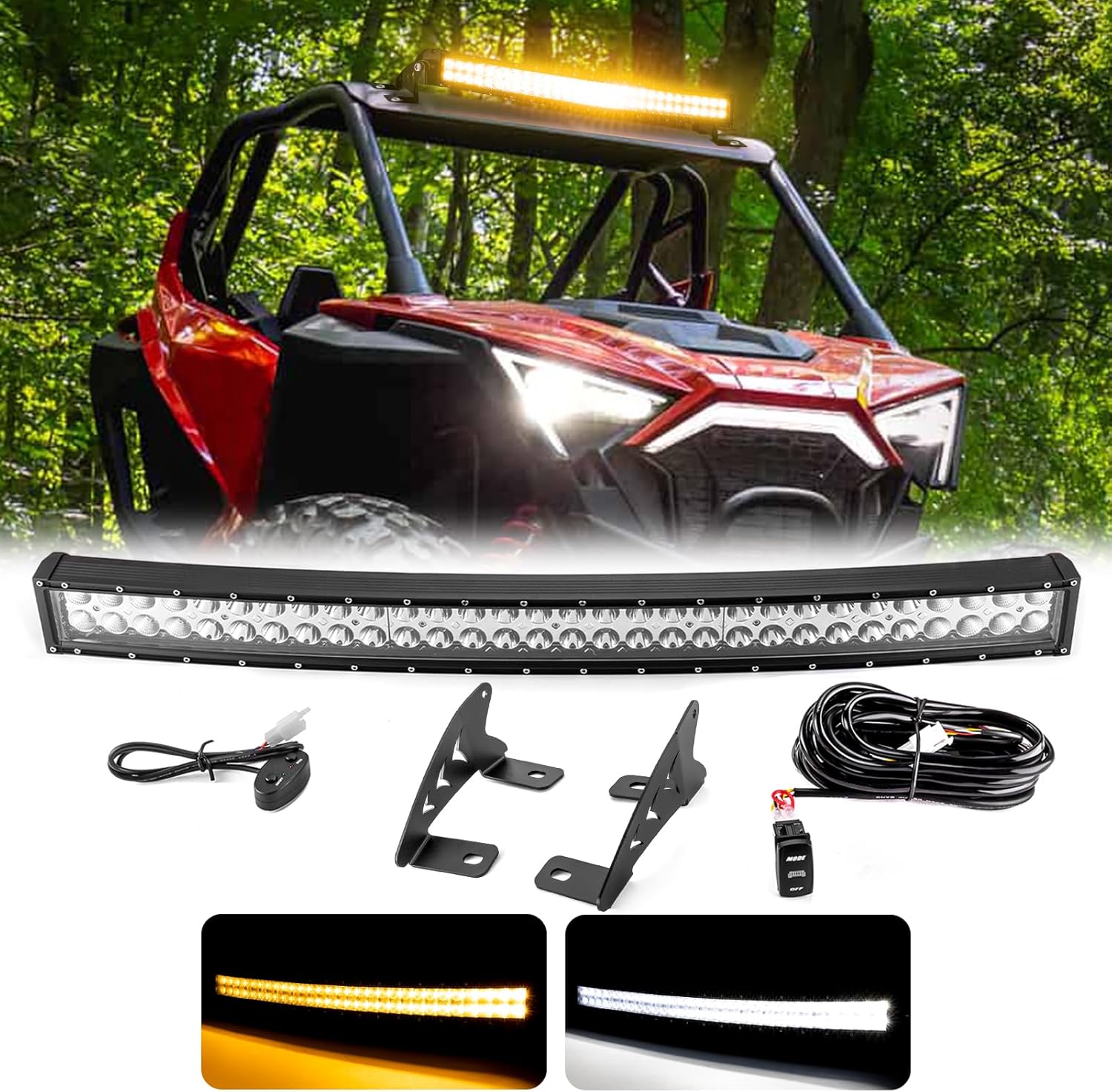 WeiSen 42" 240W Amber & White LED Curved Light Bar Kit with Memory Function Wiring Harness Rocker Switch and Mounting Brackets Compatible with Polaris General XP 4 2019-2024