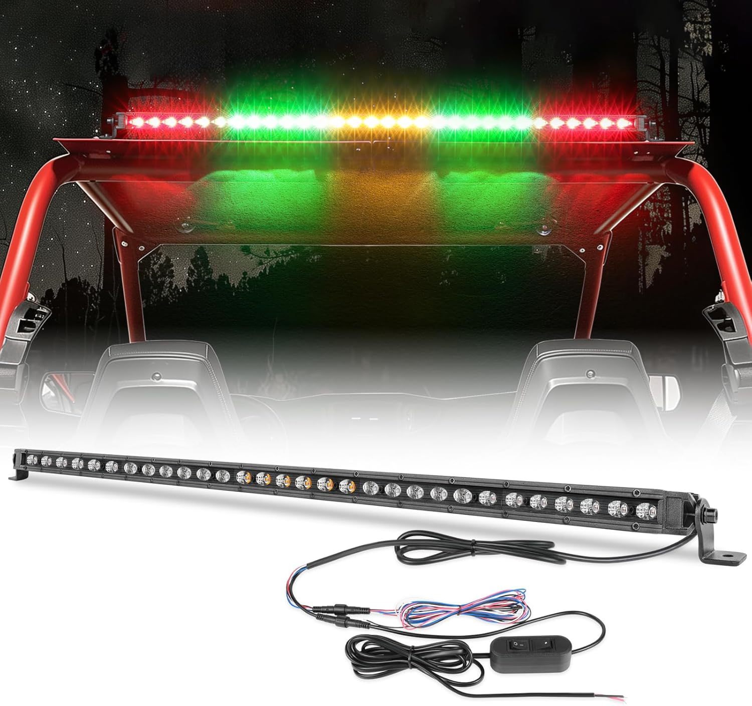 OFFROADTOWN 31Inch LED Chase Light Bar UTV Rear Chasing Lights Slim Off Road Chase Emergency Strobe Light w/Turn Signal Brake Reverse Rear Lights for RZR Polaris 4x4 Can-Am Trucks Pickup - RGYGR