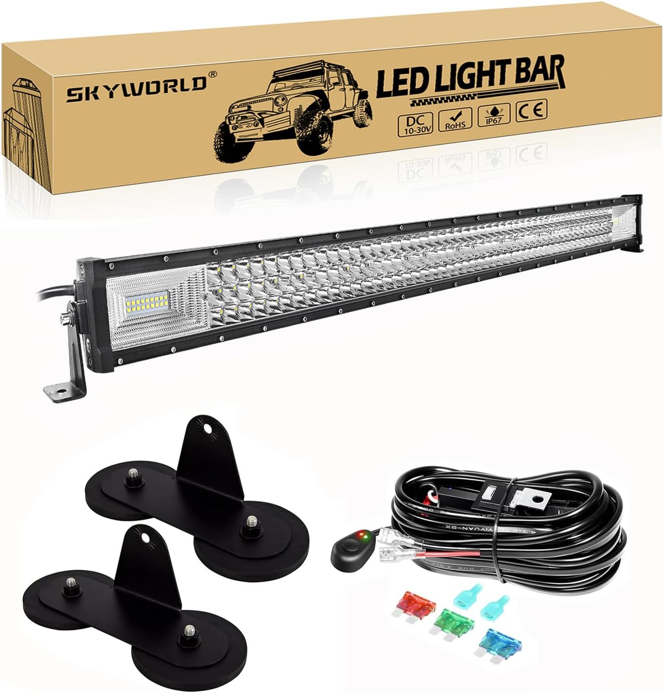 SKYWORLD 42" 540W Triple Row Off Road LED Light Bar, 12V/24V Flood/Spot Combo Beam with 2 Magnetic Mounts & Wiring Harness Kit - for Trucks, SUVs, UTV, ATV, Tractors, Trailers, 6000K White