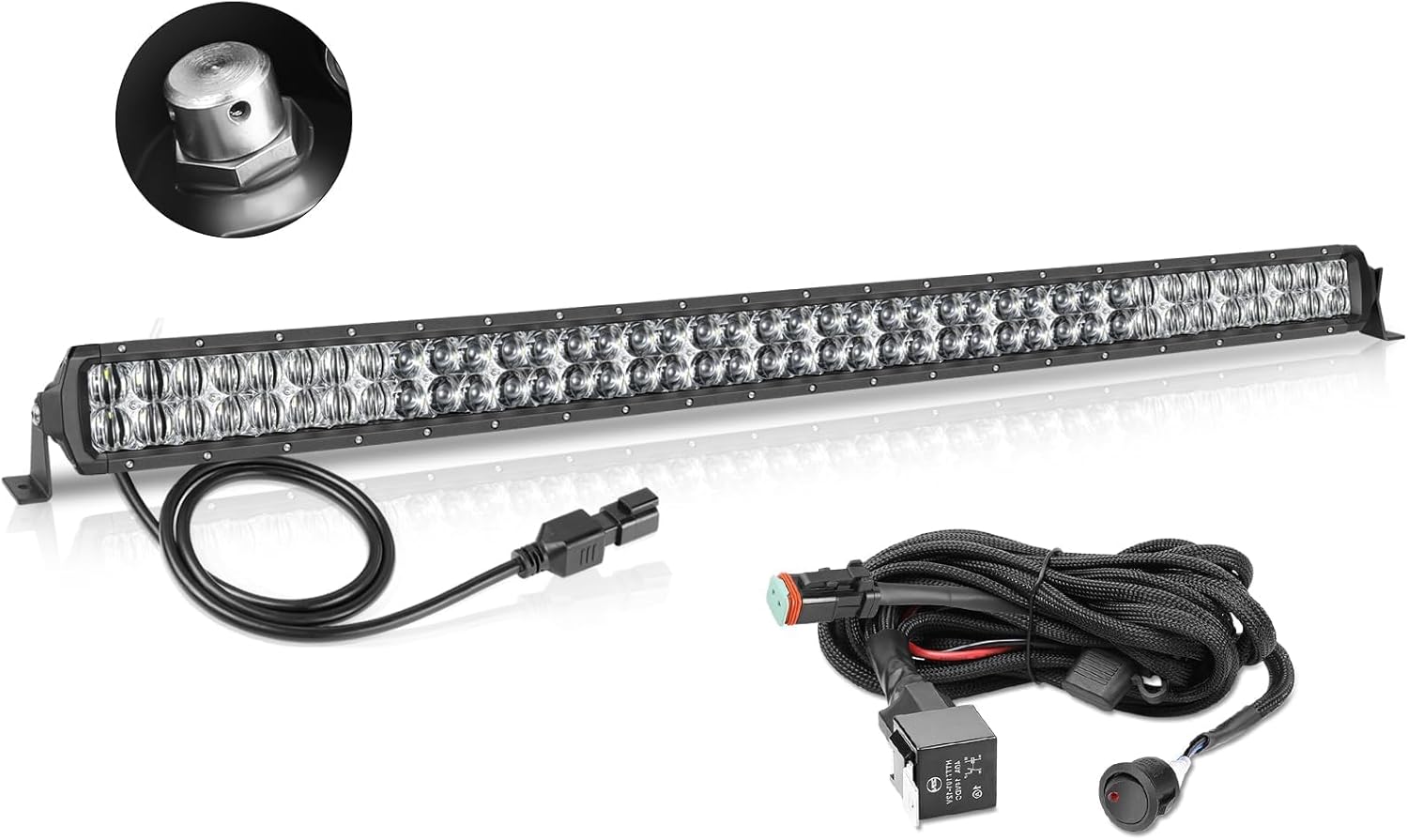 40 Inch LED Light Bar w/Wiring Harness, AKD Part 400W 5D Lens Offroad Driving Light Spot Flood Combo Double Row LED Work Light Kit Bumper Hood Roof Light Bar for Trucks Pickup SUV UTV Boat