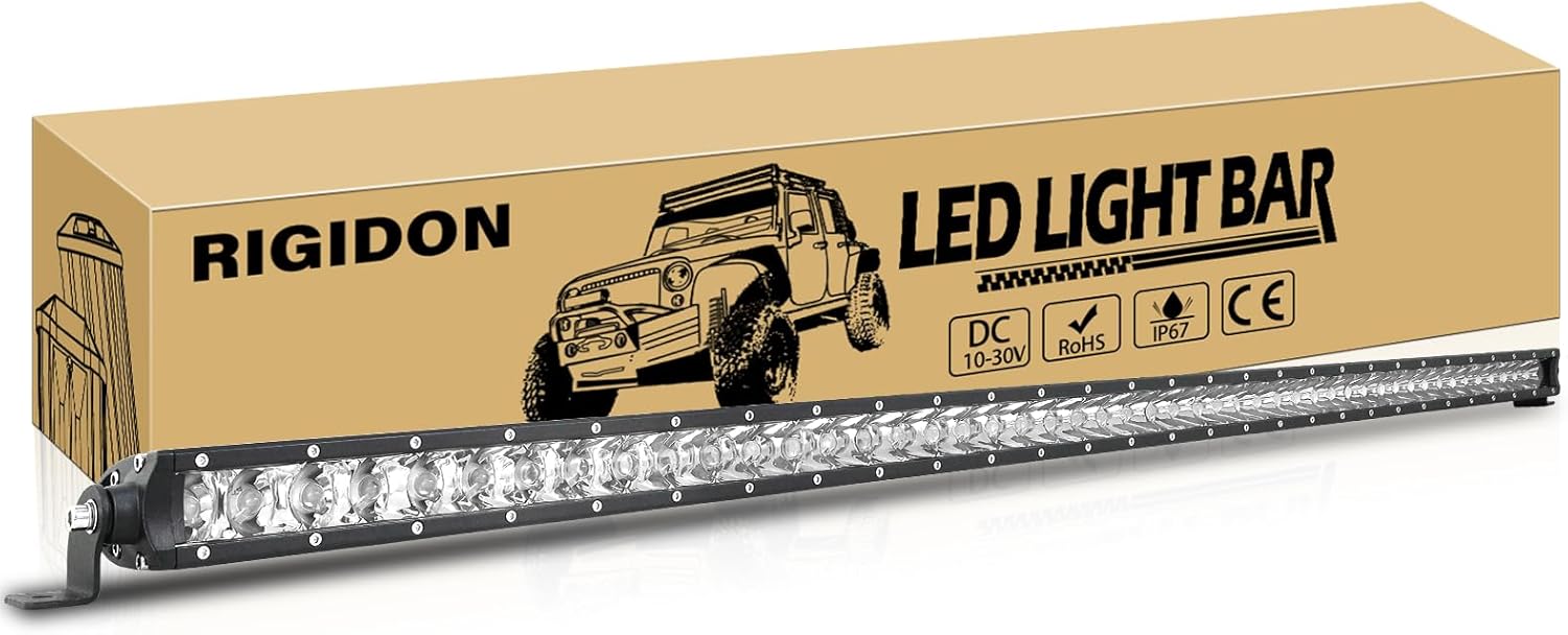 RIGIDON 50 Inch 240W Light Bar, Single Row Spot 24000LM LED Light Bar Waterproof Driving Boat Road LED Work Light for ATV UTV Truck