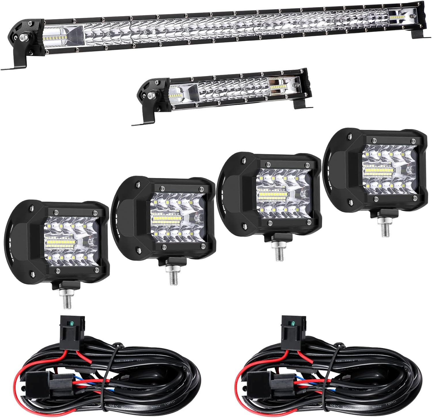 Frienda 8 Pcs 30, 15 Inch LED Light Bar Kit with 4 Inch LED Pods and 12 V Wiring Harness Kit Double Row Utv Truck Light Bars for Trucks ATV Utv SUV Pickup Boat