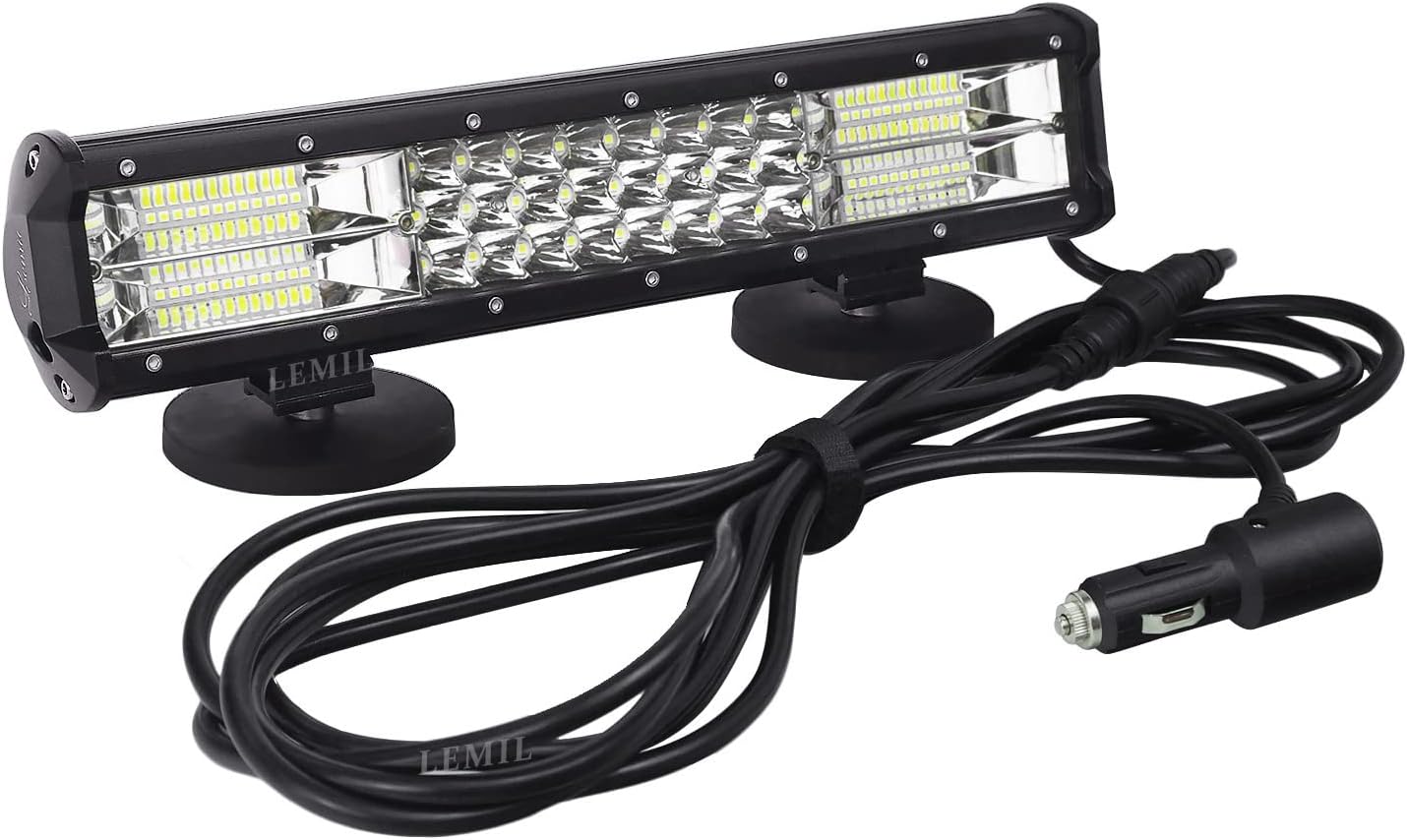 LEMIL LED Light Bar 15" 216W Magnetic Triple Row Flood Spot Combo Beam Work Lamp With Cigarette Lighter Plug, High Power Wire Harness Kit for SUV ATV UTV 12V