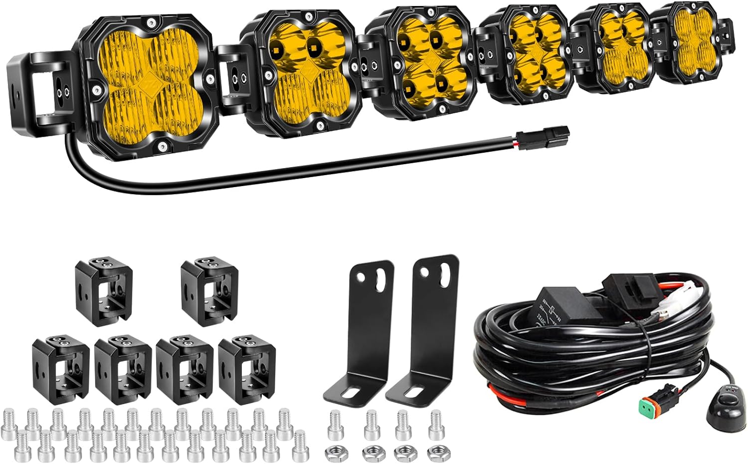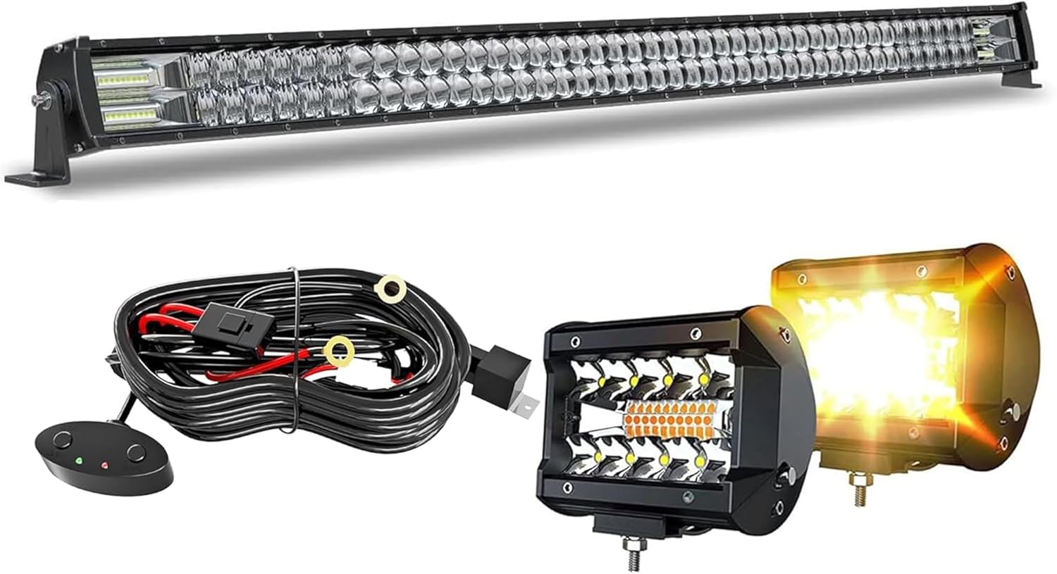ASLONG 52 Inch LED Light Bar 300W Spot Flood Combo,2Pcs 4 Inch White/Amber Yellow LED Pods Fog Lights,Wiring Harness Kit with Switch,Offroad Driving Light for Pickup