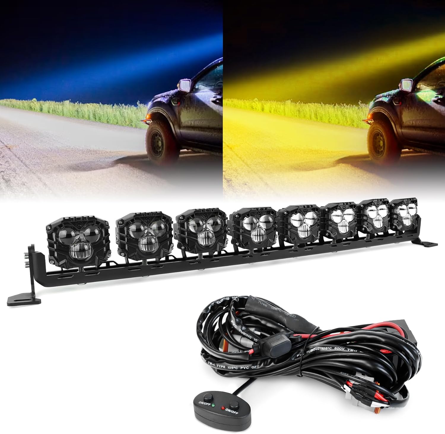 32 Inch LED Light Bar,Dual Color-Amber White 240W High Intensity Projector Spot Beam Off Road Light with On/Off Wiring Harness Kit for Tractor,ATV,UTV,Boat,Trucks Roof Bumper