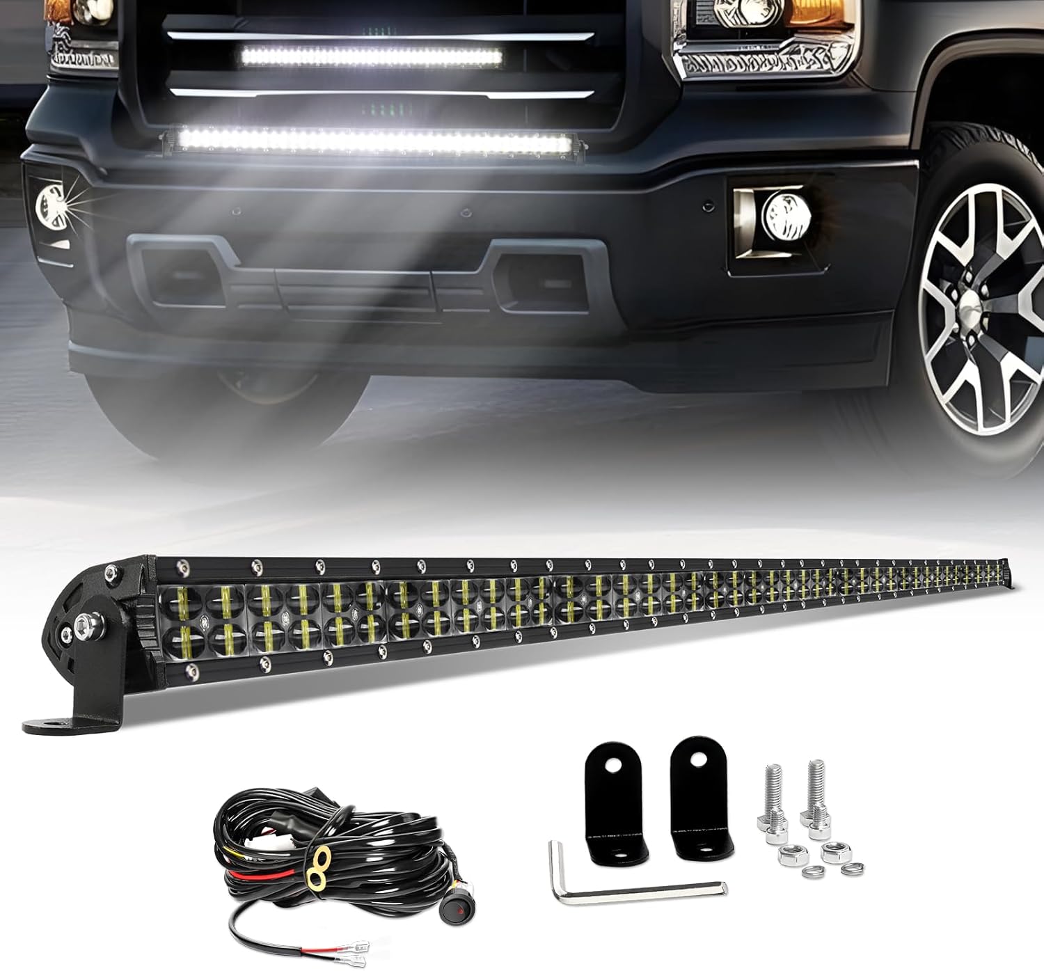 BraveWAY 42Inch LED Light Bar 240W 48000LM Dual Row Light Bar Spot Flood Combo LED Work Lights 6D Lens Fog Lights Offroad Lighting Driving Lightbar for Trucks UTV ATV Tractor SUV 4WD Boat 4X4 Pickup