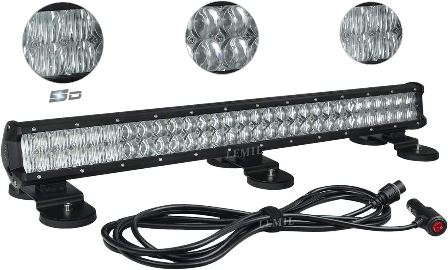 LEMIL 28'' 180W 5D LED Light Bar Magnetic Work Flood Spot Combo Lamp Fog Driving Boat Off Road Pickup Car ATV SUV 4X4 4WD 12V 24V (GS-3500)