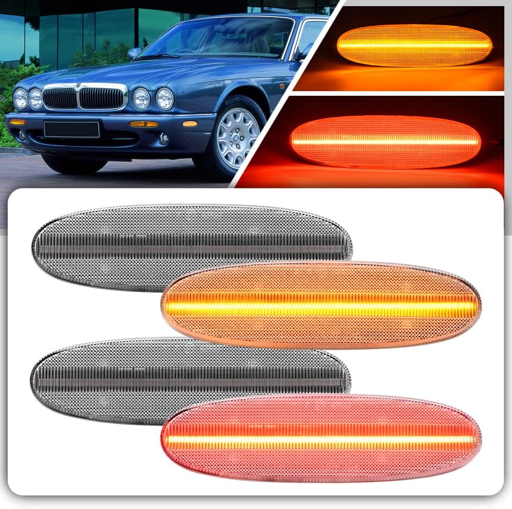 4Pcs LED Front Rear Bumper Side Marker Lights Assembly for 1998-2003 Jaguar Vanden Plas VDP XJ X308 XJ8 XJ Sport XJR Clear Lens Amber/Red LED Sidemarker Lamps Replace OEM Side Markers Indicator