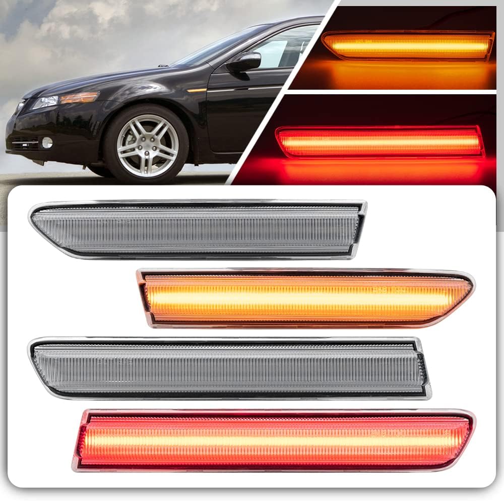 nsautolighting 4Pcs LED TL Side Marker Lights Front Rear Sidemarker Lamps for 2004-2008 Acura TL Clear Lens Amber/Red LED Side Markers Replace OEM Side Marker Indicator Light Lamp Assembly