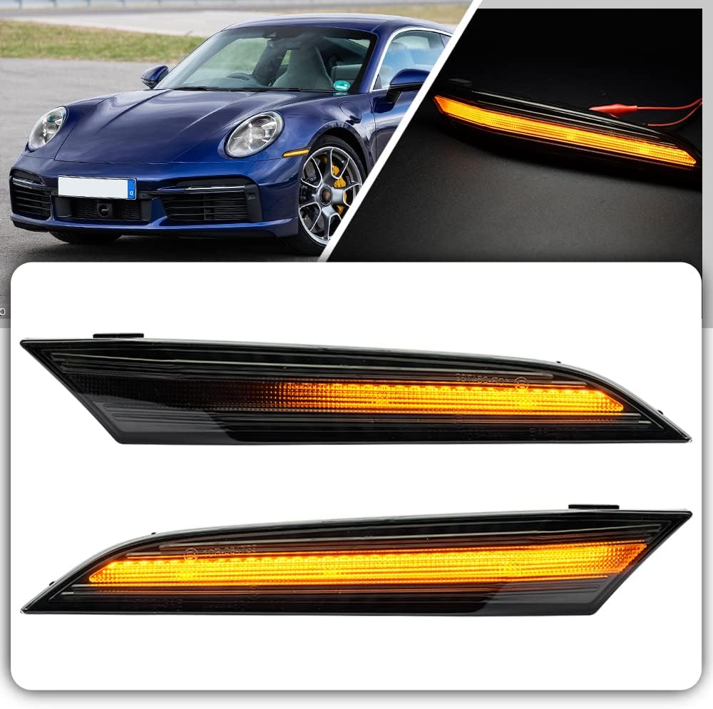 nsautolighting LED Sequential Side Marker Lights Dynamic Turn Signal Indicator Lamps for 2019 2020 2021 2022 Porsche 911 992 Smoked Lens Dynamic Sidemarker Light Turn Signal Blinker Indicator Lamp