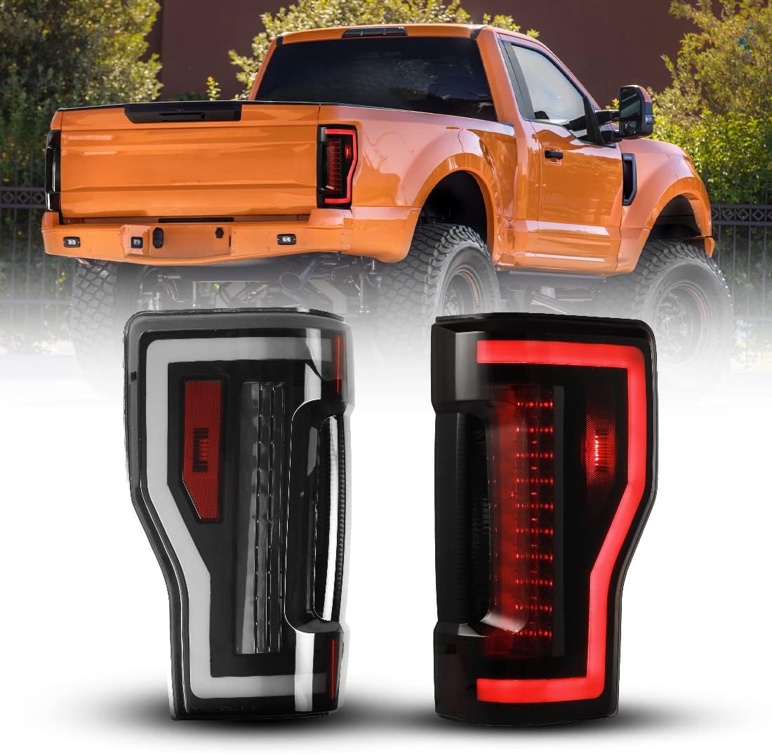 ROXX LED Tail Lights for 2017 2018 2019 Ford F-250/F-350/F-450 Super Duty [Halogen Type w/o Blind Spot Detection], Super Duty Tail Lights w/Sequential Turn Signals, Driver & Passenger Side (Smoke)