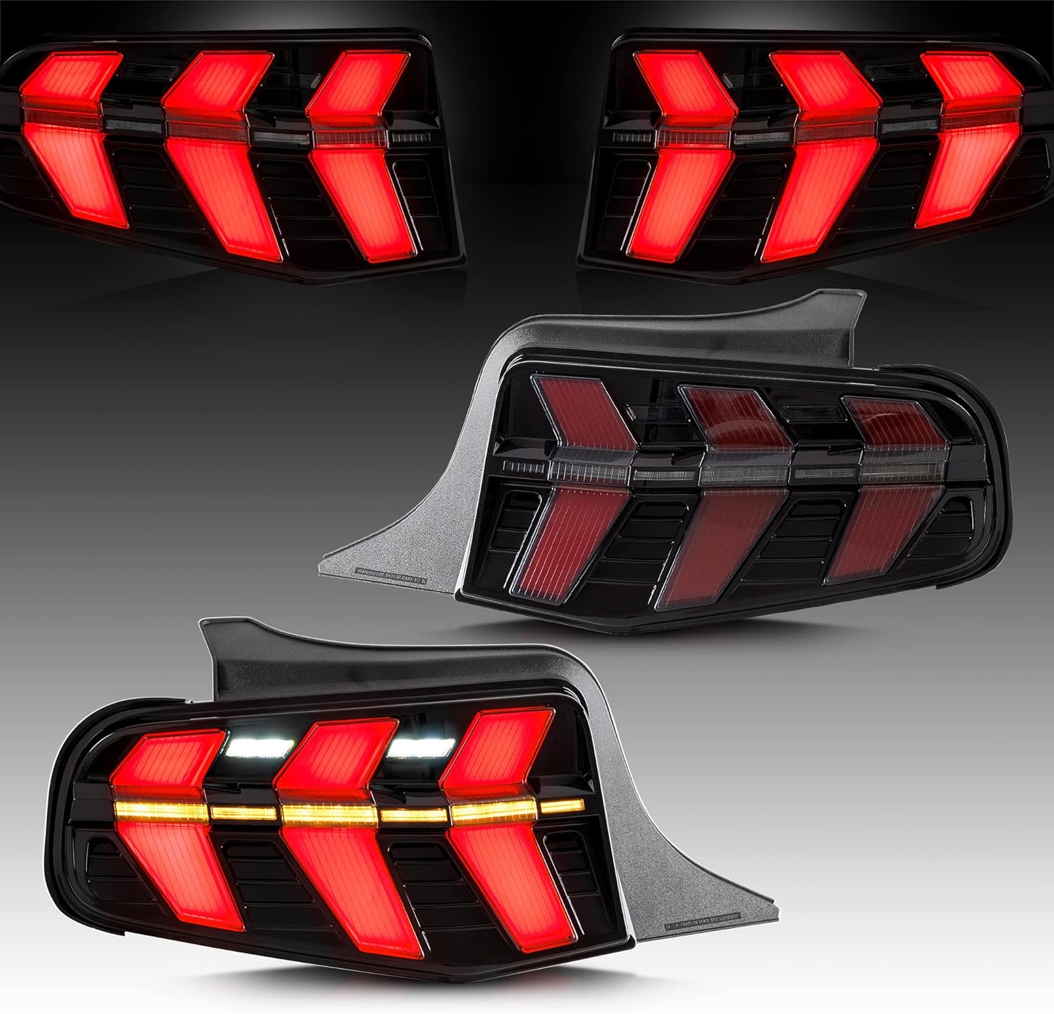 VLAND LED 7 Lighting Modes Tail Lights Assembly Compatible For [ Ford Mustang 2010 2011 2012 ] W/Sequential Red/Amber Turn Signal Light, Start-up Animation Running lights, Driver & Passenger