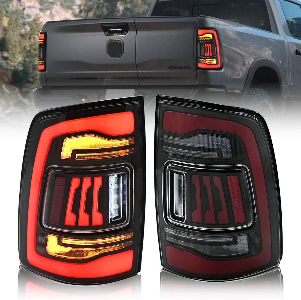 Tail Lights for 4th Gen Dodge Ram 1500 2500 3500 2009-2018 Taillights Rear/Back Lights w/Startup Animation w/Amber Sequential Turn Signal Fit Led/Halogen Models(White Smoked)