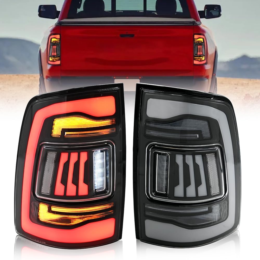 Tail Lights Compatible with 4th Gen Dodge Ram 1500 2009-2018 Ram 2500/3500 2010-2018 Taillights Rear Lamp w/Startup Animation Sequential Turn Signal Fit Led Halogen Models(Red Smoked)