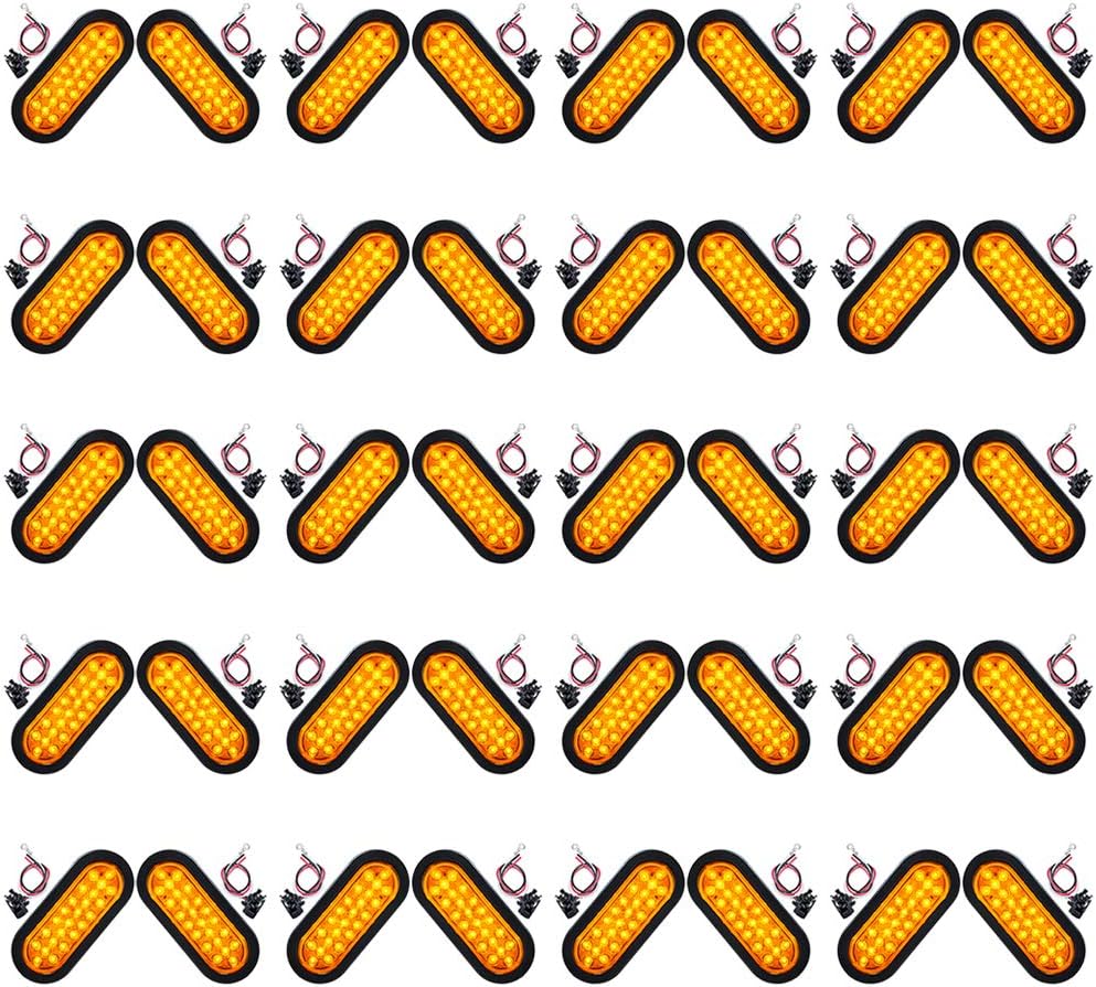 amopacorp 40pcs Amber 24-LED Oval Oblong Sealed Turn Signal Indicator Tail Light Grommet Mount for Trailer Truck RV 12V