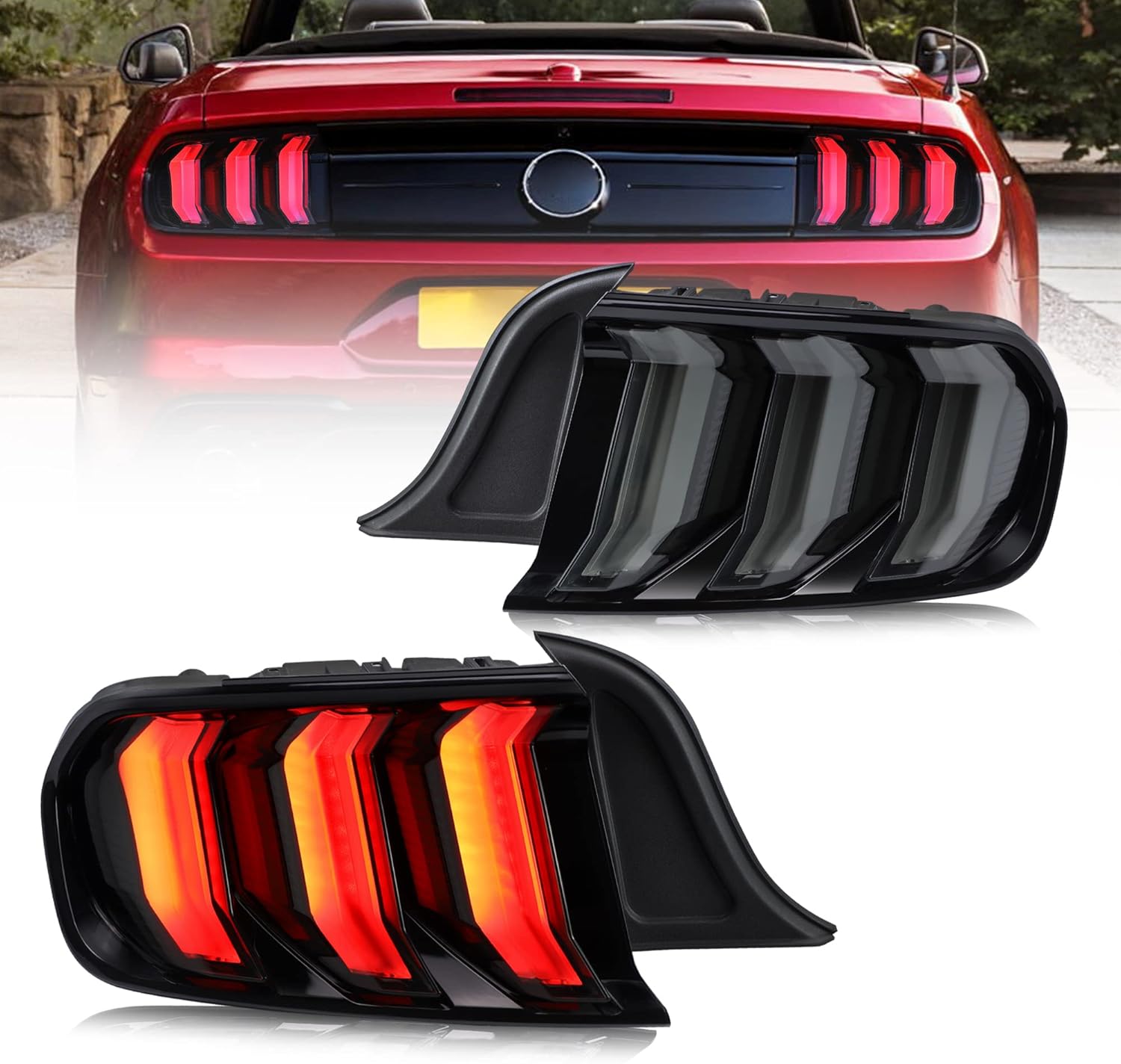VLAND Led Rear Lights Compatible with Ford Mustang 2015-2023 w/Sequential Amber/Red Turn Signal (5 Lighting Modes Switchable), Tinted Lens Taillight Assembly, Passenger&Driver Sides