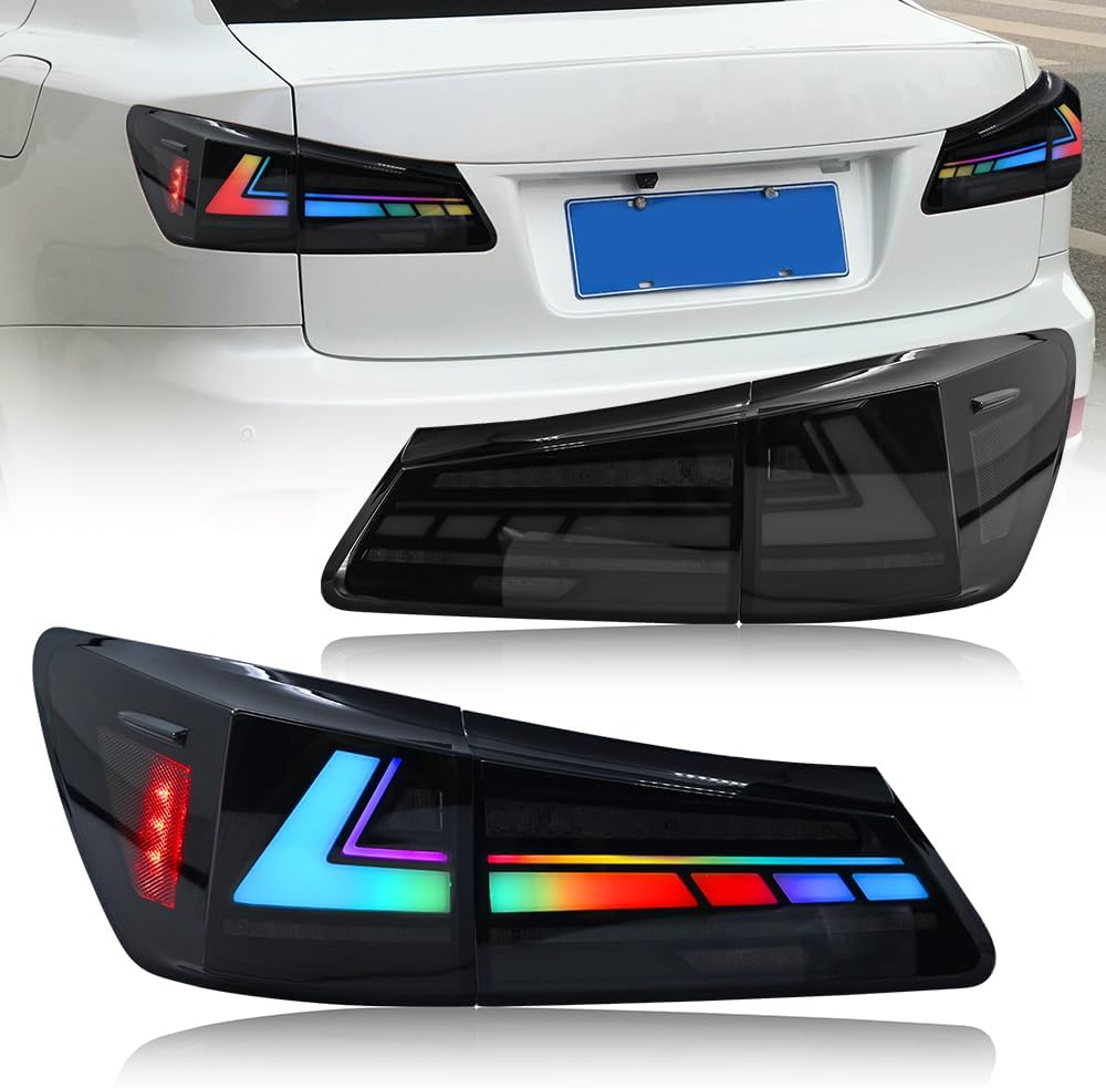 Taillights Fit for Lexus IS250 IS350 IS220d 2006-2012 IS F 2008-2014(Not for IS250C/ IS350C) Tail Light Rear Lamp with Multicolor DRL Sequential Turn Signal, No Bulbs Needs Smoked