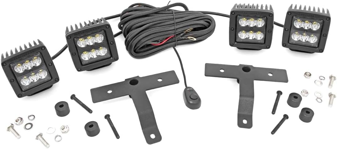 Rough Country Quad LED Light Pod Kit w/White DRL for 18-23 Jeep JL/JT - 70824