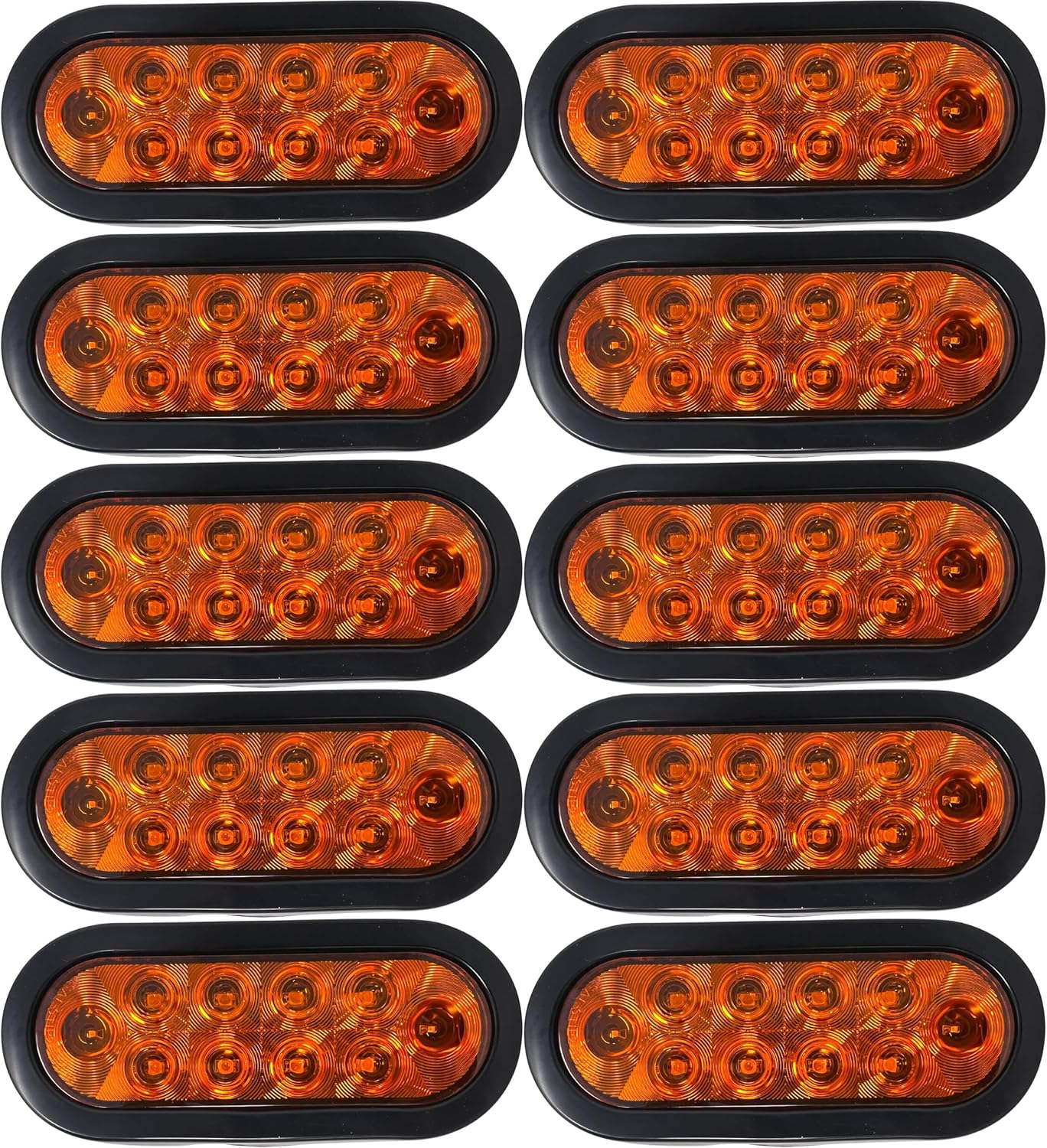 10x Amber 6" Oval 10 LED Trailer Signal Mid Turn Stop Turn Tail Indicator Light Kit DOT Certified with Grommets & Plugs IP67 Waterproof Headache Rack Backrack Truck Camper RV 12V