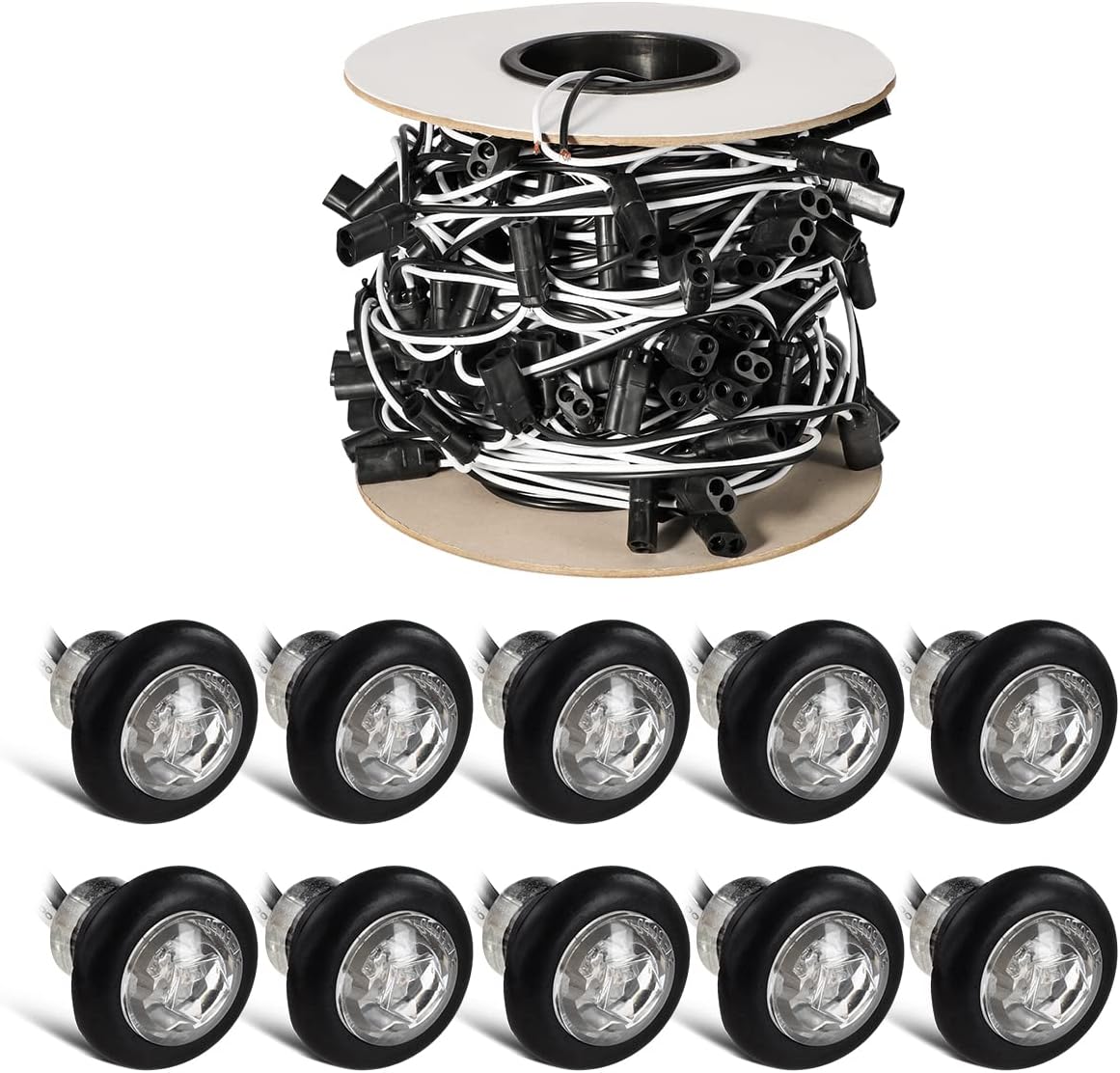 Partsam 10x Red 3/4" Round Side Marker Clearance Lights+1pcs Double Female Bullet Plug Wire Harness Roll