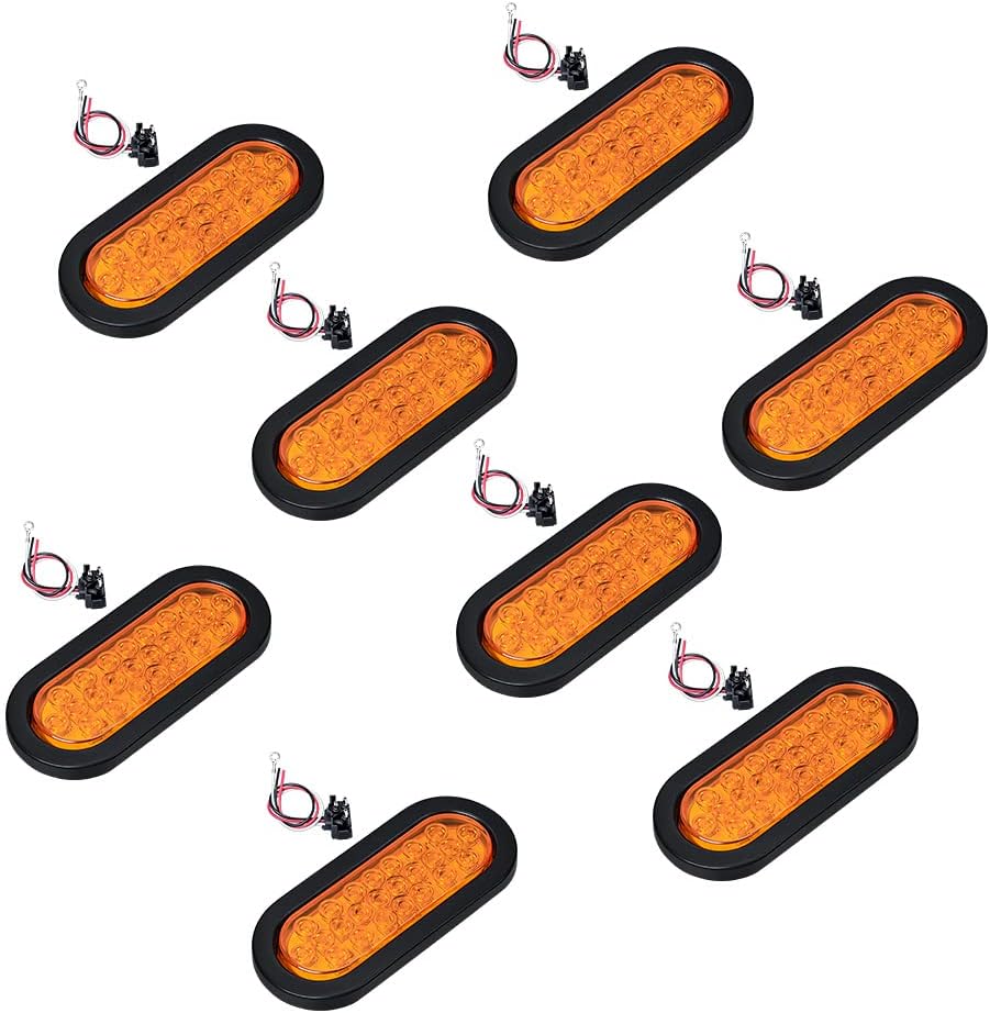 16X Amber 24-LED Oval Oblong Sealed Turn Signal Indicator Tail Light Grommet Mount for Trailer Truck RV 12V