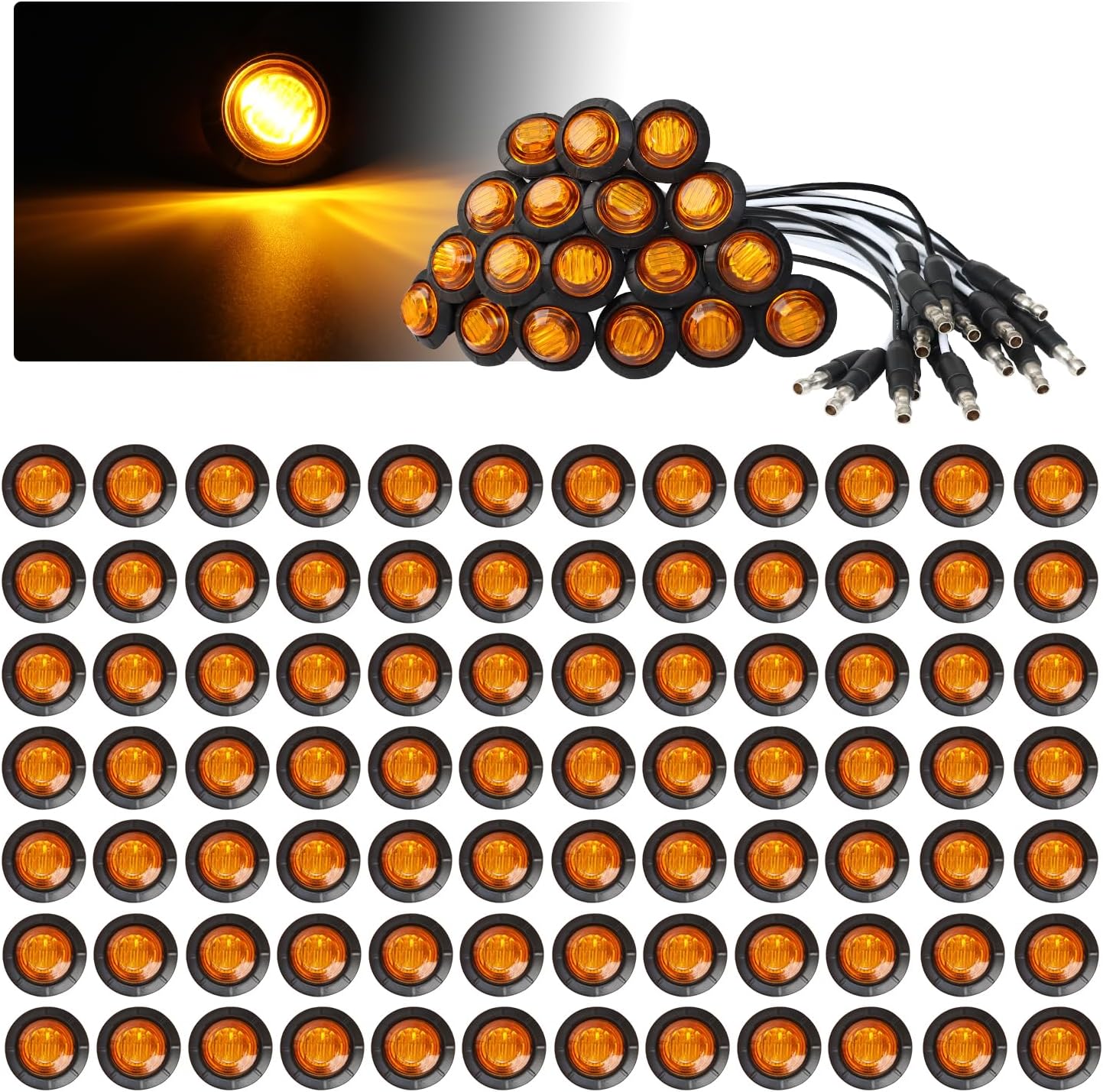 TMH 3/4 Inch LED Bullet Marker Amber Light with Connector Plug Clearance Markers Side Marker Indicator Light Waterproof Universal Fits RV, Boat, Pickup Truck 12V DC (Pack of 100)