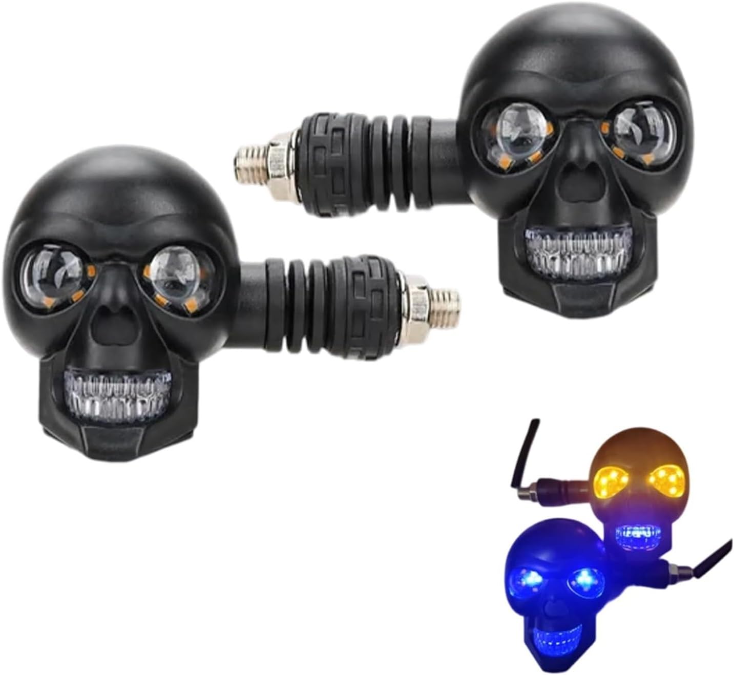 Skull Head LED Motorcycle Turn Signals 12V Universal Amber White Yellow 10mm Screw Mount Indicator Lights for Scooter Dirt Bike(All Color)
