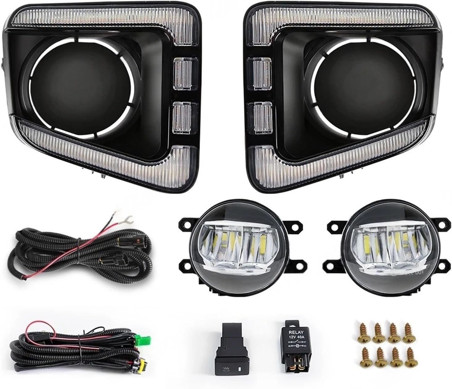 DRL Compatible With Toyota Tundra 2014 2015 2016 2017 2018 2019 2020 2021 Daytime Running Light Yellow Turn Signal Indicator Bumper Lamp(DRL With LED White)