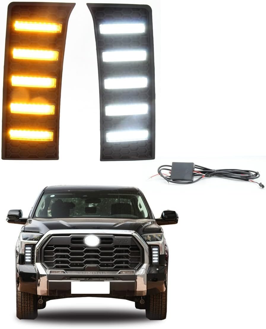 Auto-Tech 1 Pair LED DRL Turn Indicator Signal Daytime Running Fog lights Replacement For Toyota Tundra 2022-2023