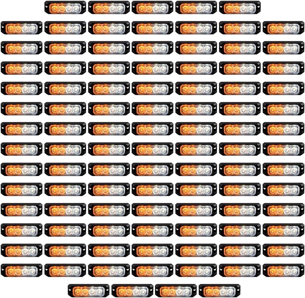 amopacorp 100X 4-LED Surface Mount SYNC Emergency Warning Caution Flashing Strobe Light Bar Car Truck 12V-24V (White Amber, Waterproof)