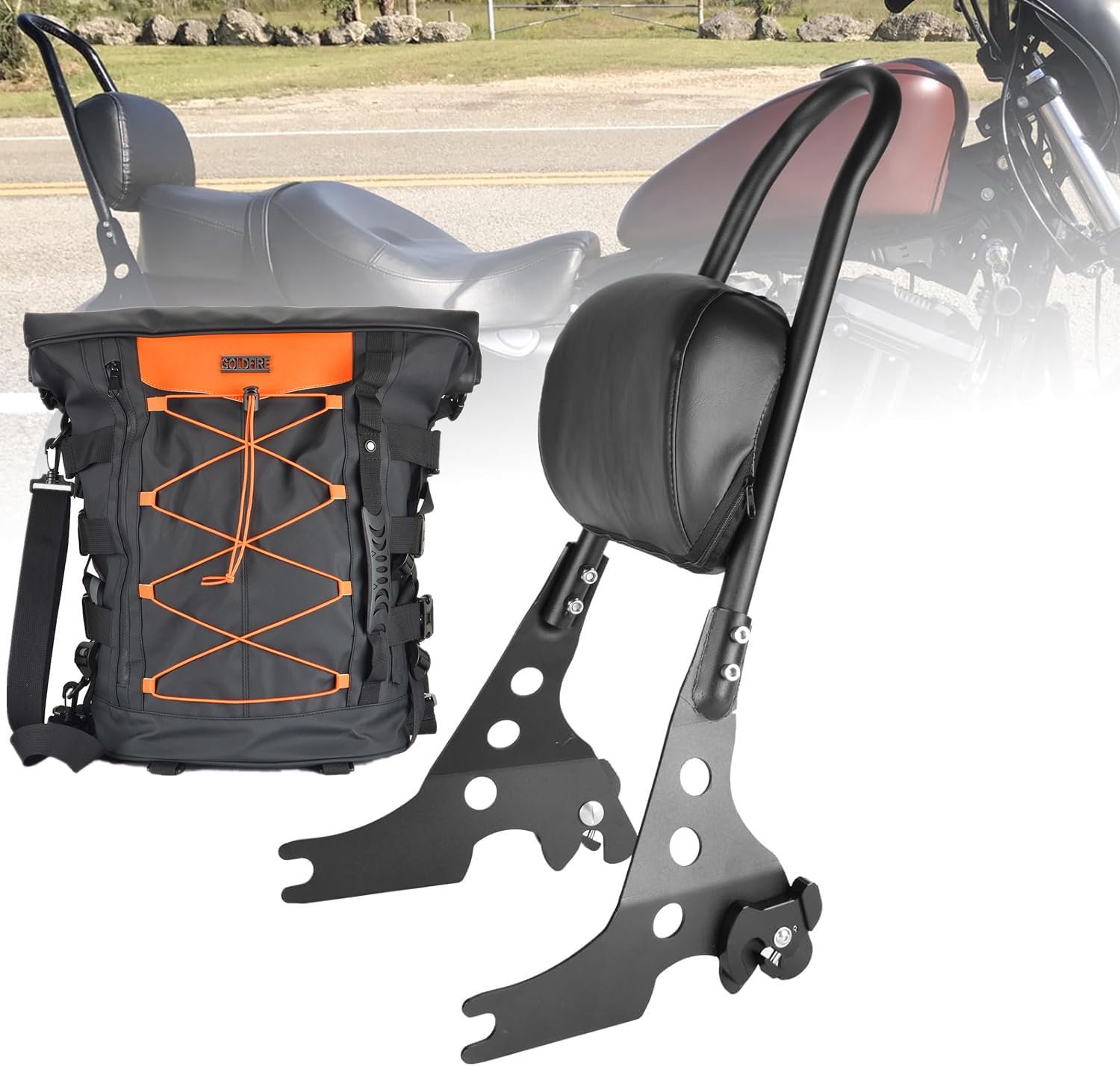 Goldfire Motorcycle Sissy Bar Detachable Rear Upright Backrest W/Cushion Pad Expandable Motorcycle Tail Bag Travel Luggage Sissy Bar Bag For Harley Sportster XL 883 1200 2004-Up