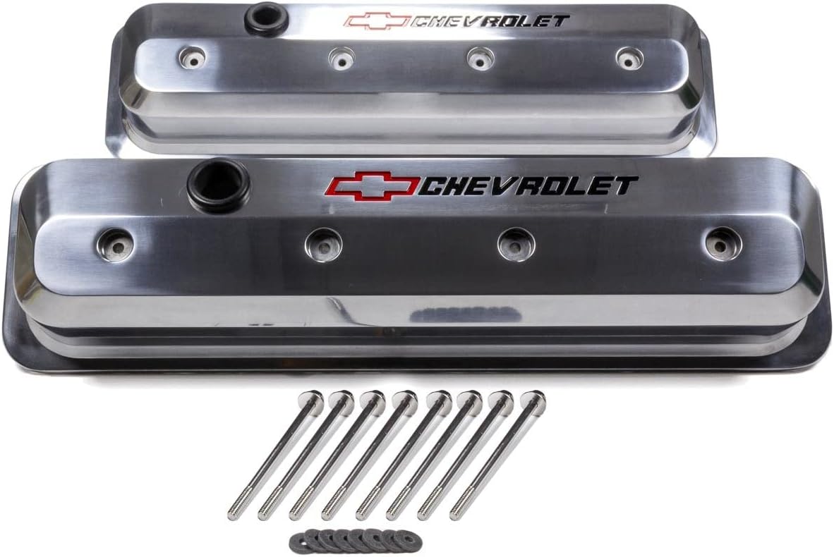 GM-141-843 Chevrolet Bowtie Slant Valve Covers Centerbolt Small Block Polished