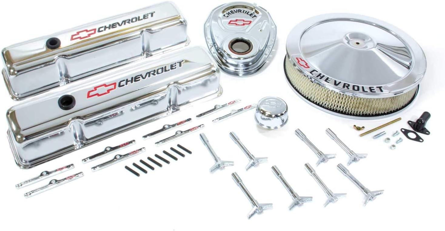 Proform 141-900 Chrome Engine Dress-Up Kit with Black Chevrolet/Red Bowtie Logo for Small Block Chevy