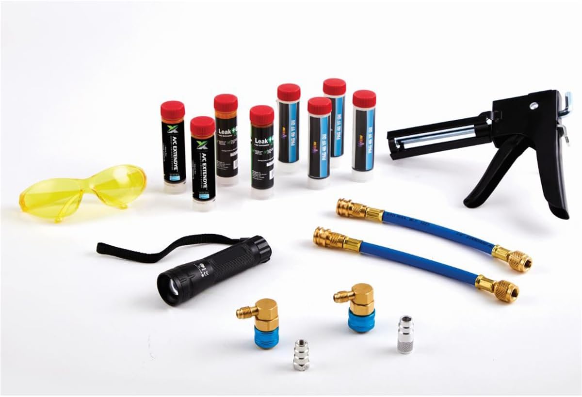 UView 390200 SpotGun Jr Injection Master Kit, Automotive A/C Repair, Phazer UV Light, Purge Valve Adapters, R-134a and R-1234yf Couplers, Universal Oil and ExtenDye Cartridges, LeakGuard, UV Glasses