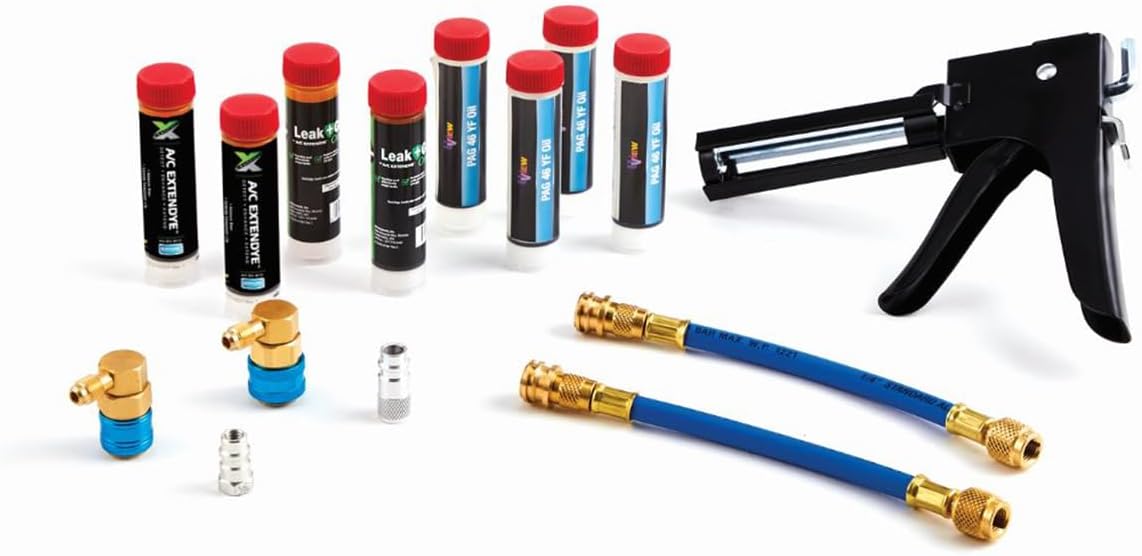 UView 390100 SpotGun Jr Injection Master Kit, Automotive A/C System Repair, Reliable Performance, Purge Valve Adapters, R-134a and R-1234yf Couplers, Universal Oil Cartridges, ExtenDye, LeakGuard