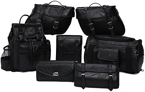 Motorcycle Bags - Luggage Set - All Genuine Leather - Fits Any US Bike - Extra Storage Pockets Featuring Rugged Stitching - Set of 9 Pieces