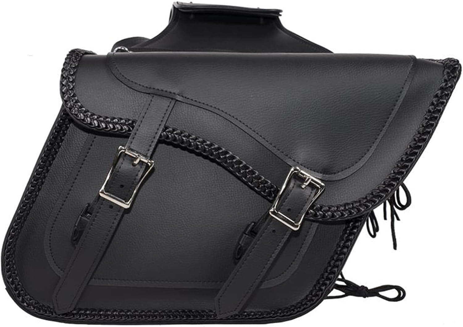 Dream Apparel Faux Leather Motorcycle Saddle Bags Throw Over Saddlebags, PVC Motorcycle Side Bags for Honda Shadow Sportster Softail Dyna V-star (Black, No Studs)