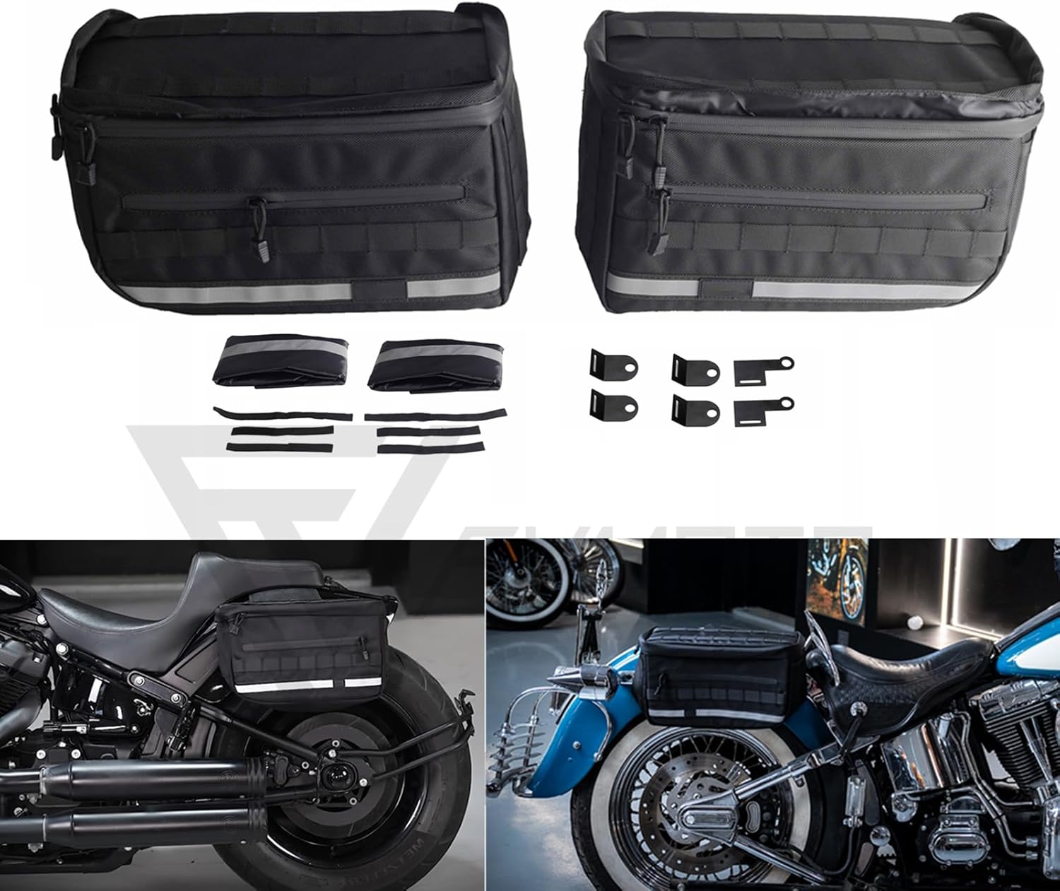 Universal Saddlebags Saddle Luggage Storage Bag Compatible with Harley Softail Dyna Street Bob Wide Super Glide FXR FXLRS Low Rider S Sportster, With Reflective Strips, 30L(7.9 Gallons)