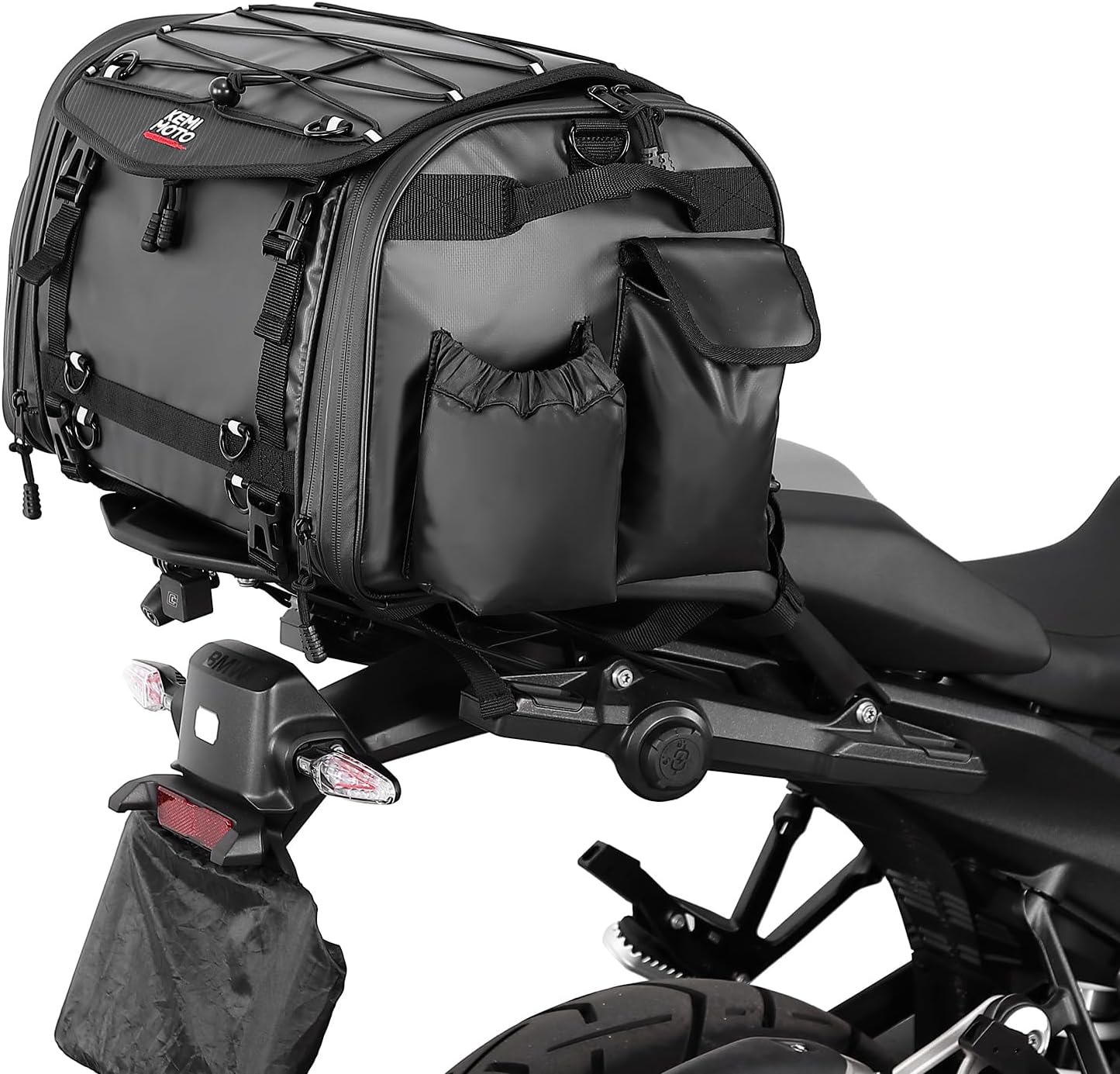 KEMIMOTO Motorcycle Tail Bag, Dual Use Motorcycle Rear Seat Bag with Waterproof Rain Cover, 45L Expandable Motorbike Helmet Bag Luggage Storage Backpack