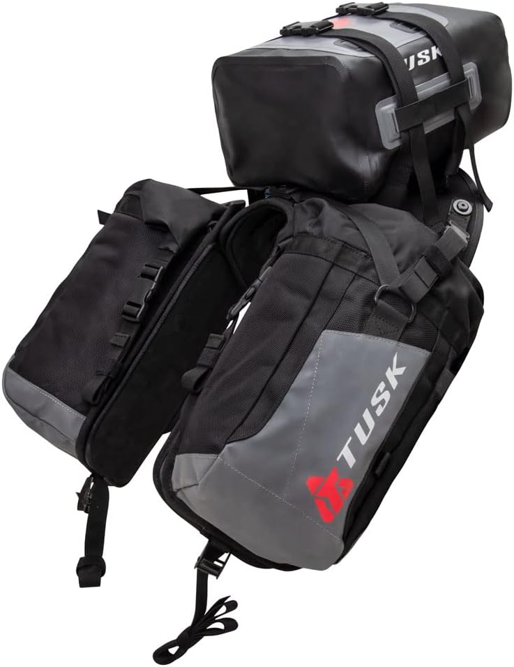 TUSK Excursion Rackless Luggage System w/X-Small Dry Duffel Tail Bag Standard Heat Shield Black/Grey for Suzuki V-Strom 1000XT Adventure 2019