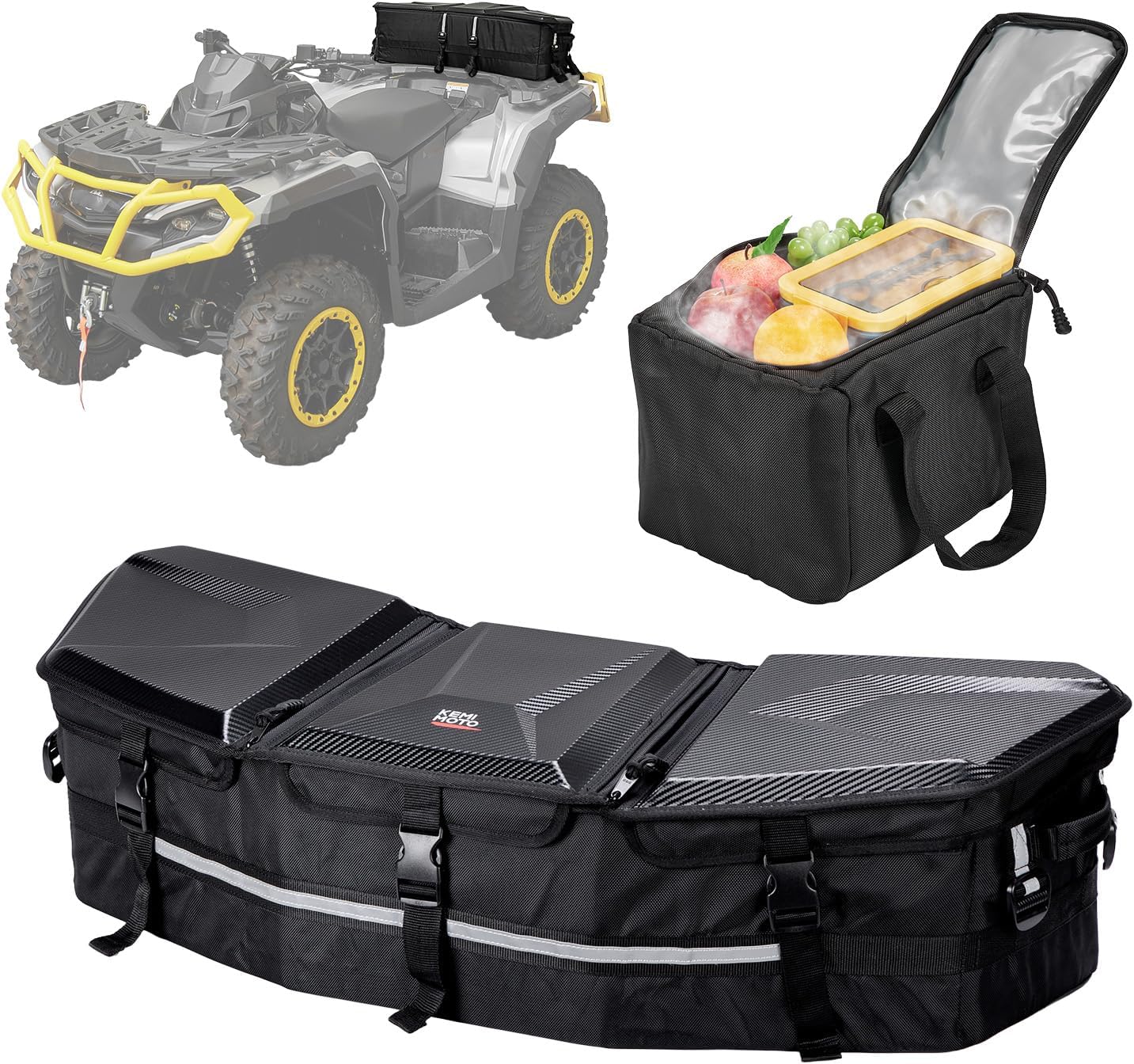 KEMIMOTO Upgraded ATV Cargo Bag, 50L ATV Front/Rear Rack Toolbox Trunk Cooler Bag Compatible with Can-am X3, Outlander Renegade 500 800 570 850 650 1000 MAX 500 (Black)