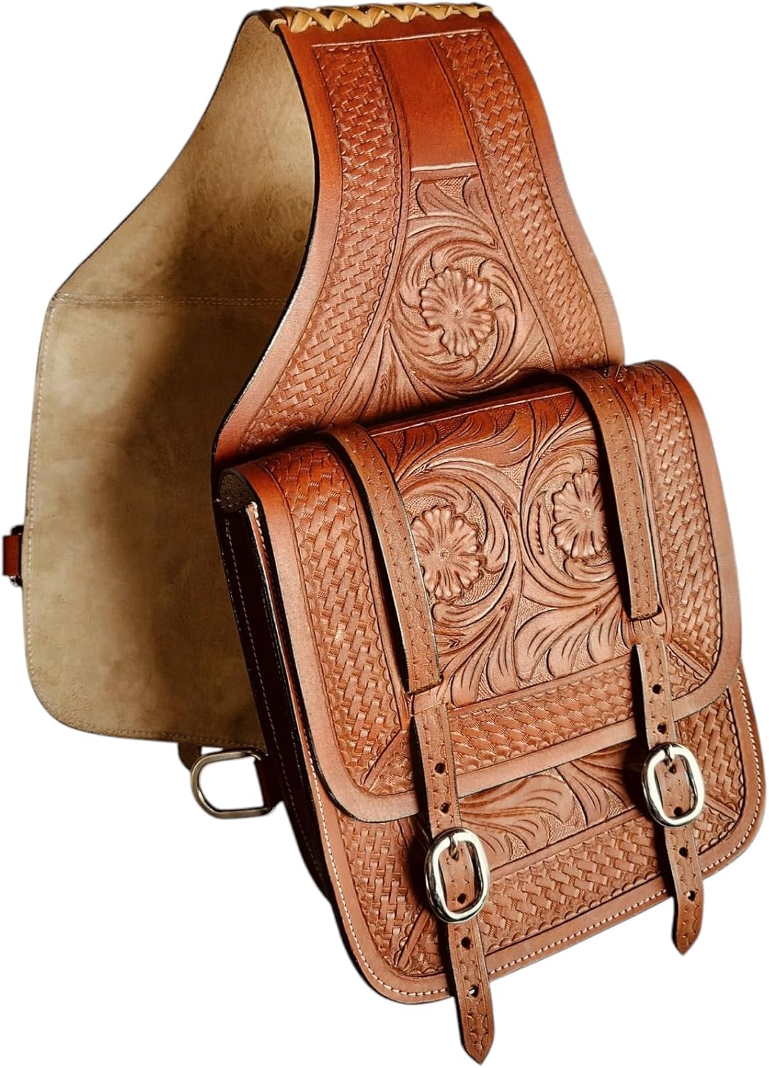 Leather Saddle Bag for Western Horse Riding – Premium Trail & Barrel Racing Bag with Adjustable Strap (Brown, 11"x11"x4")