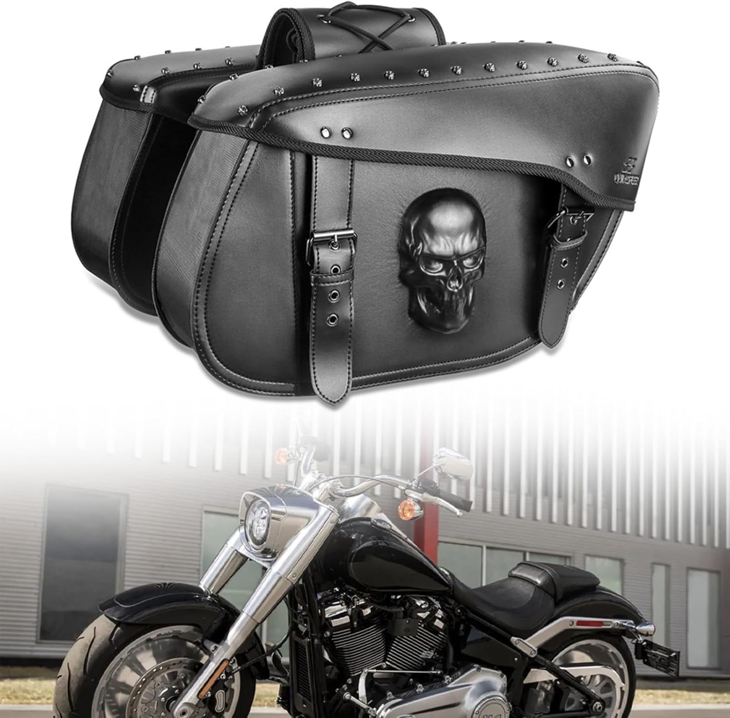 Motorcycle Saddlebags 32L Large Capacity PU Leather Side Saddle Bags Waterproof Hard Saddle Bags Universal for Harley Honda Yamaha Bobber Sixty Kawasaki (3D Skull,Black)