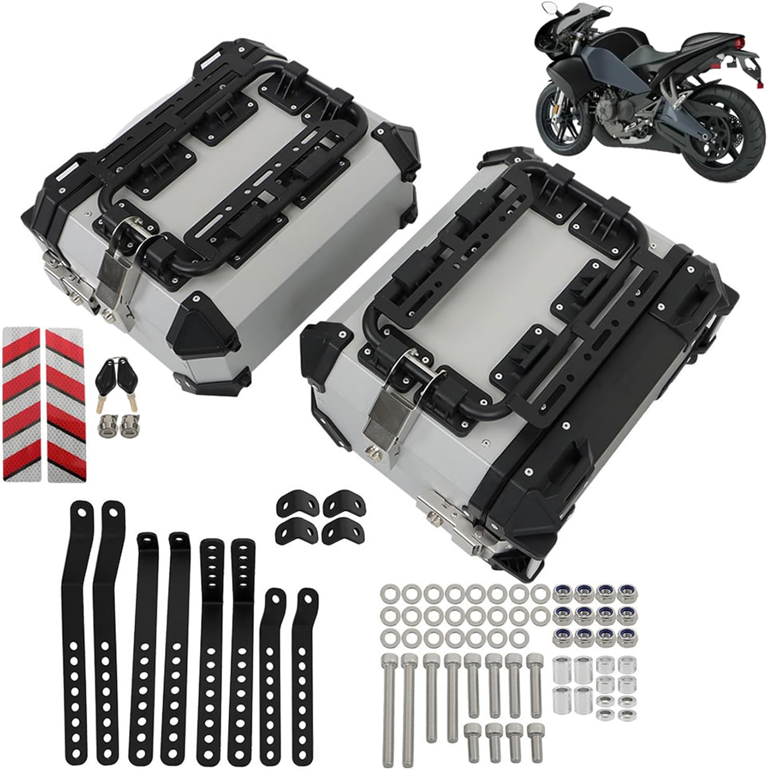Motorcycle Panniers Side Case Motorcycle Hard Side Saddlebag Box 38L Silver Replacement for Motorcycle