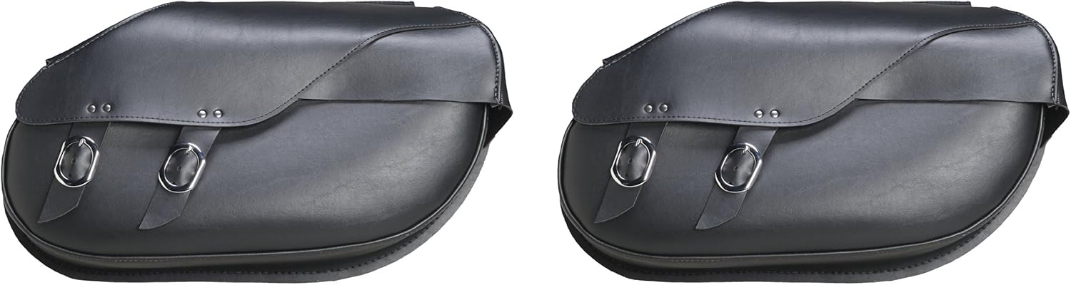 Dowco Willie & Max 59480-00 Revolution Series: Large Hard Mount Synthetic Leather Retro Motorcycle Saddlebag Set, Black, 37.25 Liter Capacity