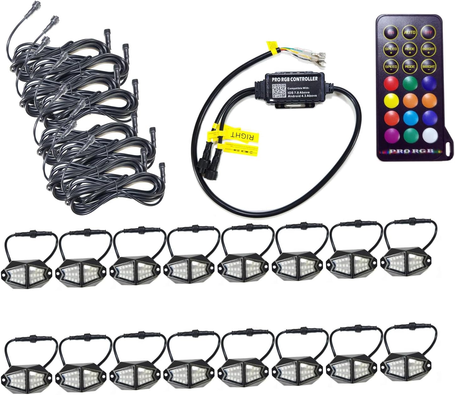 Pro Vader RGB LED Rock Lights Kit Pods Under Glow Neon Accent Lighting with Remote 4x4 (16 Rock Light Kit)