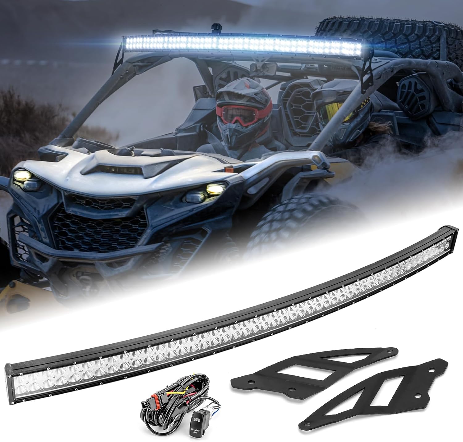 WeiSen 288W 50inch LED Curved Light Bar with Key On Wiring Harness and Light Mounting Brackets Compatible with Can Am Maverick R/Maverick R Max 2024-2025