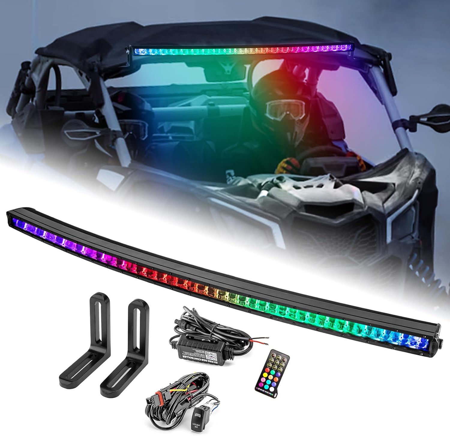WeiSen 42" 240W RGBW LED Curved Light Bar w/Key on Wiring Harness and Roof Light Mounting Brackets Compatible with Can Am Maverick X3 and X3 Max All Models 2017-2025