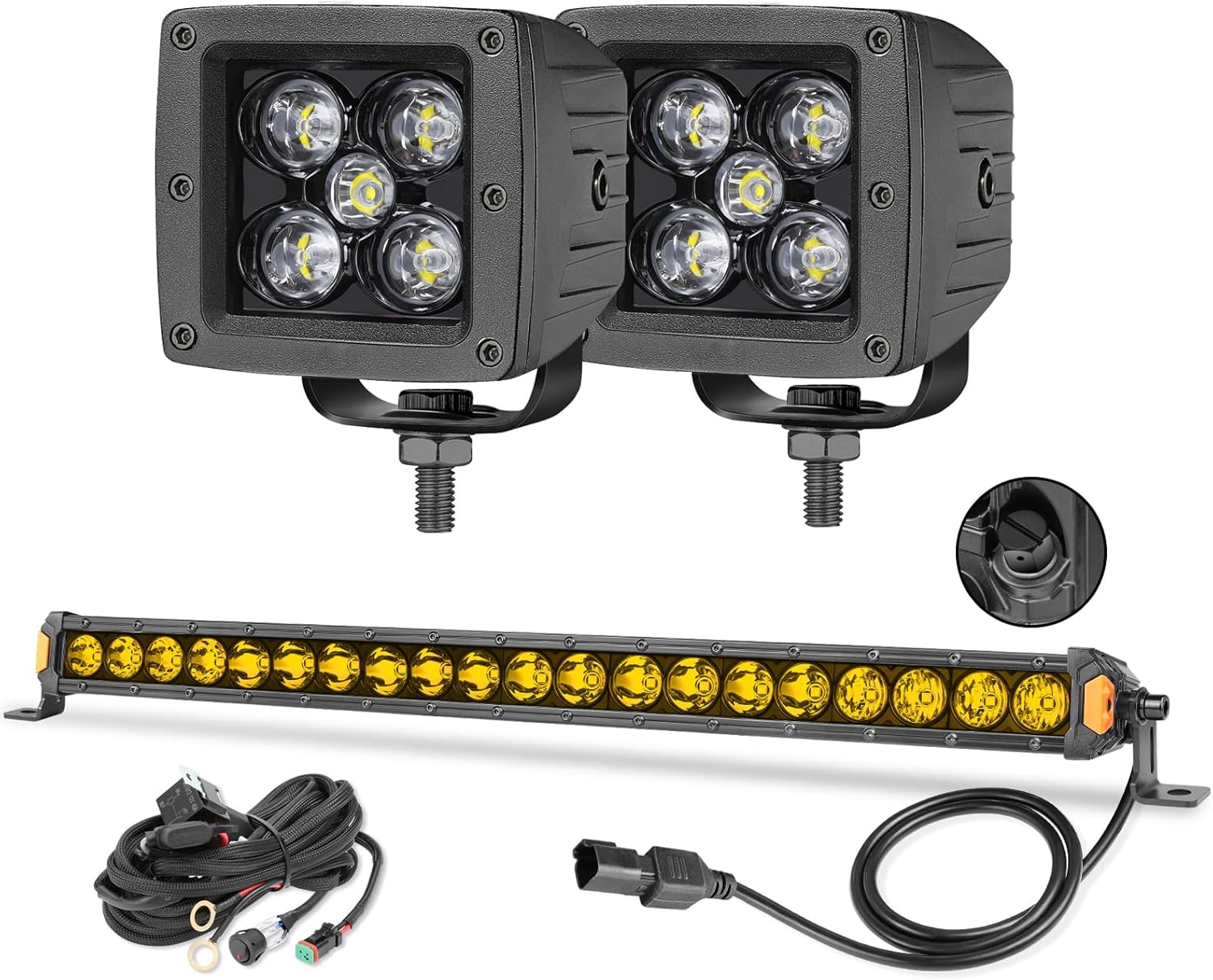 20 Inch LED Light Bar Yellow with Wiring Harness + 2PCS LED Cube Lights