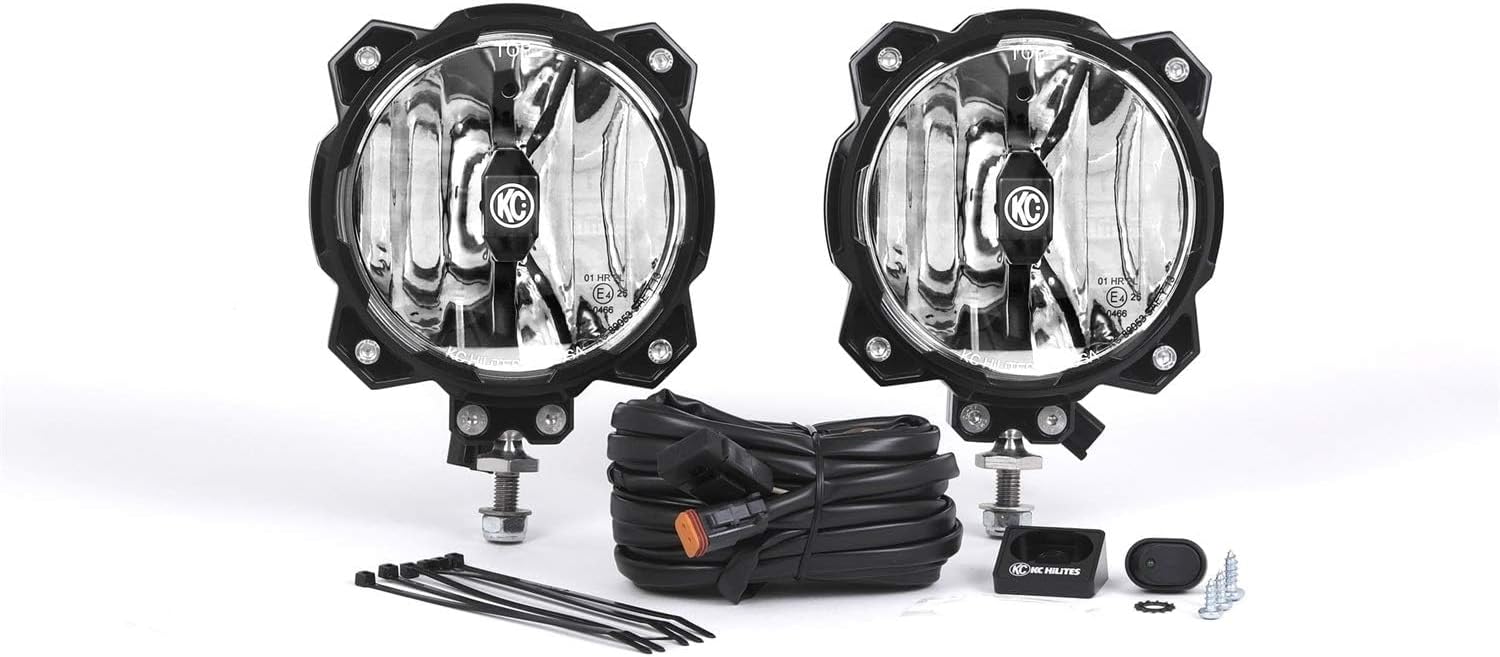 KC HiLiTES 91301 Gravity LED Pro6 Single Spot Beam with Wiring Harness and Illuminated LED Light Switch - Pair Pack System